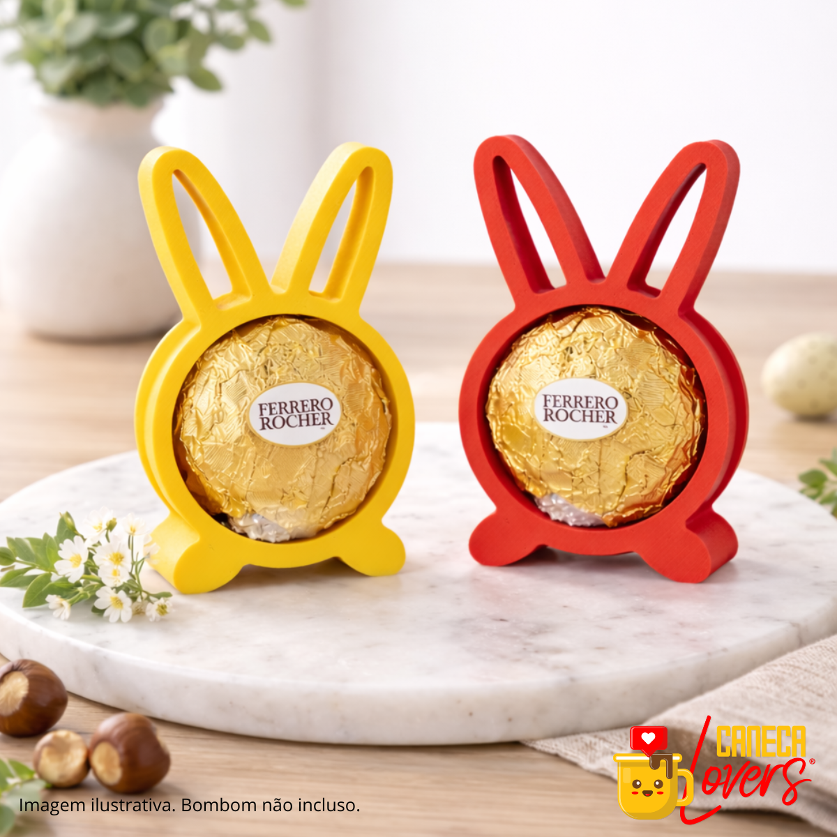 Charmoso e delicado, o Porta Bombom Coelhinho é perfeito para presentear, decorar ou compor lembrancinhas especiais. Produzido em impressão 3D, ele traz um acabamento leve e moderno que valoriza qualquer ocasião.